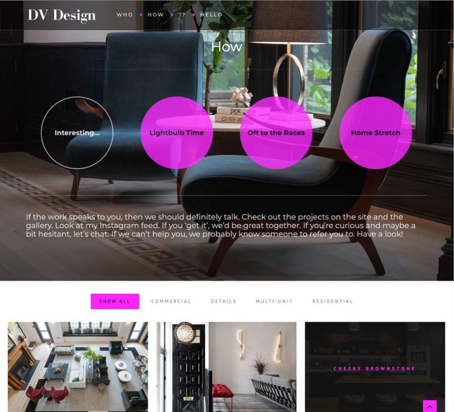 Did full branding for this edgy, yet approachable and fun interior designer. Included all logo and brand work, site design, some photography, and PR.